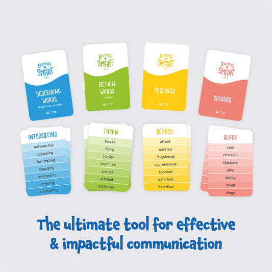 We love the cards- especially the Boring Vs Smart Cards. My daughter has been using them for her creative writing and stories she creates.